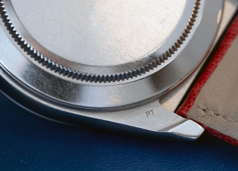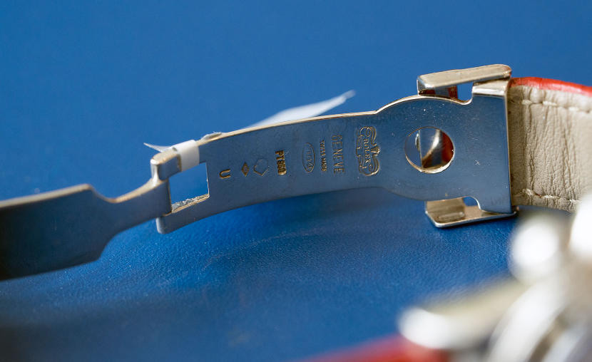 In the hand this seems to feel a little heavier than its white gold equivalent, as it should be. The primary tangible difference lies in the hallmarks on the case and clasp.