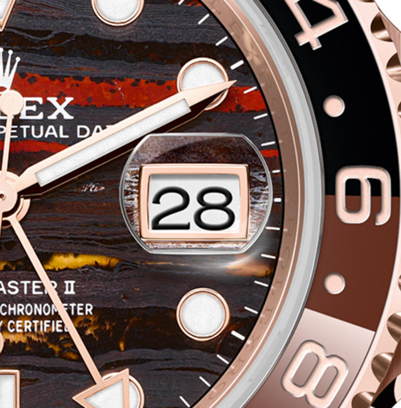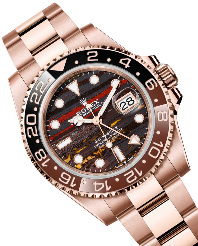 Stone dials always come at a premium compared to Rolex’s standard metal dials, and the new tiger’s iron dial high quality duplicate rolex GMT-Master II 126715CHNR “Root Beer” watches has an official retail price of $49,400 USD, which makes it even more expensive than the meteorite dial version of the white gold GMT-Master II ref. 126719BLRO. Given that the standard Everose gold GMT-Master II costs the exact same as its white gold sibling, the higher price is a direct result of its tiger’s iron dial, and this latest addition to the collection is now the second most expensive GMT-Master II model, right after the white gold ref. 126729VTNR, which was also just announced earlier this year at Watches & Wonders Geneva 2025