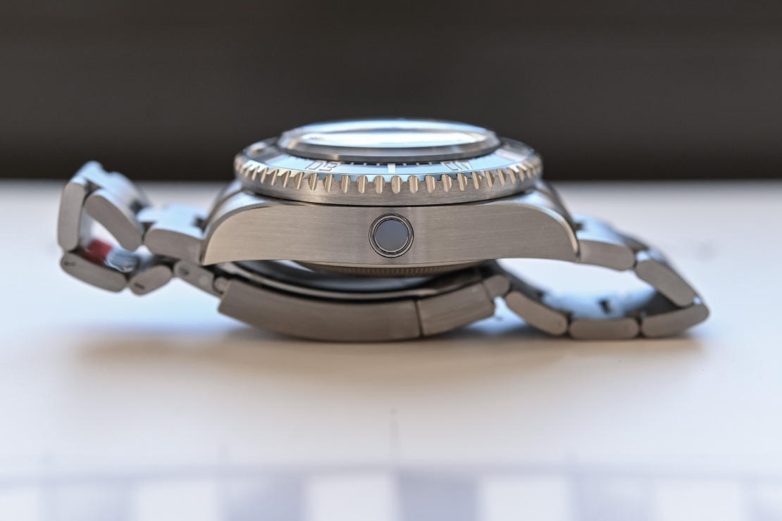 About the design of the watch, it is certainly a no-surprise model. Conservative in most aspects, it basically looks like a beefed-up Deepsea Sea-Dweller 126660. At least from a distance. There are multiple details to differentiate this Deepsea Challenge, though. The case is mostly brushed, even on the sides (that’s new) and features polished bevels on the lugs (that’s old). Not sure why Rolex chose to bring these chamfers back – maybe to visually reduce the size of the watch – but they look great, yet maybe not completely adequate in such an instrumental watch.