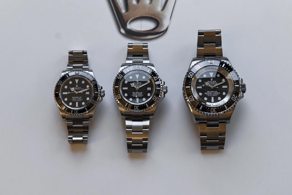 As for the proportions and the wearability, let me go straight to the point. I know the efforts done by Rolex to make this Deepsea Challenge 126067 smaller, thinner and lighter than Cameron’s watch, but it remains nevertheless a gigantic, barely wearable watch. Surely, deep down and over a wetsuit, it’ll look just purposeful. But on a daily basis, in casual attire, it’s a massive watch. Just see it next to an already large Deepsea Sea-Dweller (a 44mm x 18mm watch) and a Sea-Dweller 4000 (a 40mm watch) and you’ll see what I mean.